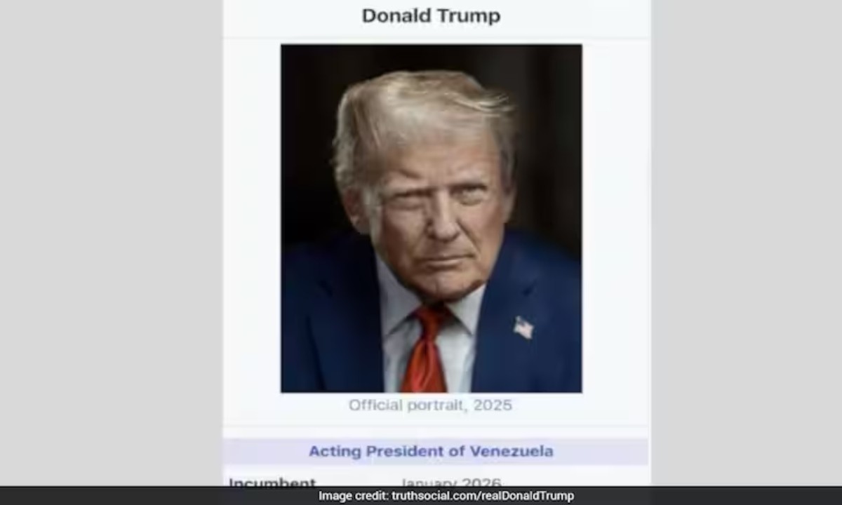 রোববার (১১ জানুয়ারি) ট্রুথ সোশ্যালে নিজের একটি ছবি শেয়ার করেন ট্রাম্প। ছবিটির ক্যাপশনে বলা হয়, ২০২৬ সালের জানুয়ারি থেকে তিনি ভেনেজুয়েলার ভারপ্রাপ্ত প্রেসিডেন্টের দায়িত্বে আছেন।